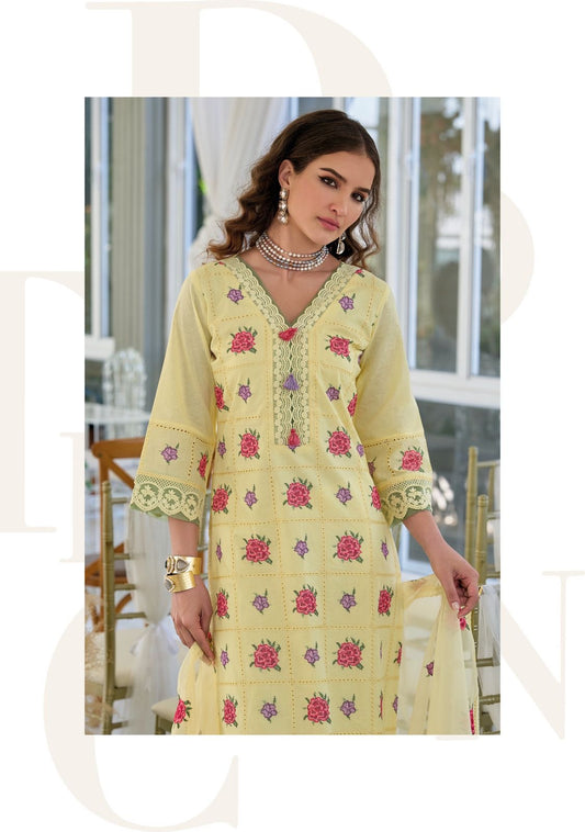 Floral Radiance: A Symphony in Yellow Threads