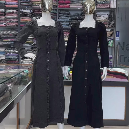 Expertly crafted for style and comfort, our Square Luxe Denim Dress boasts a square neck design and a maxi length for a chic and sophisticated look. Made from high-quality denim, this dress is both durable and stylish, perfect for any occasion. Elevate your wardrobe with this must-have piece.